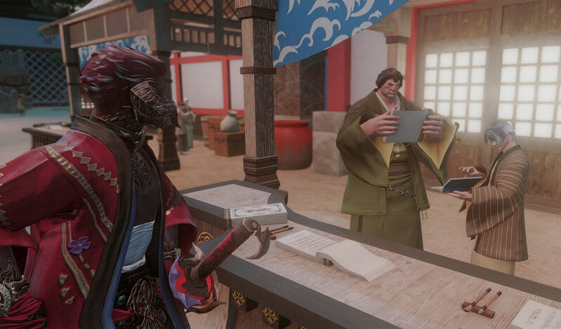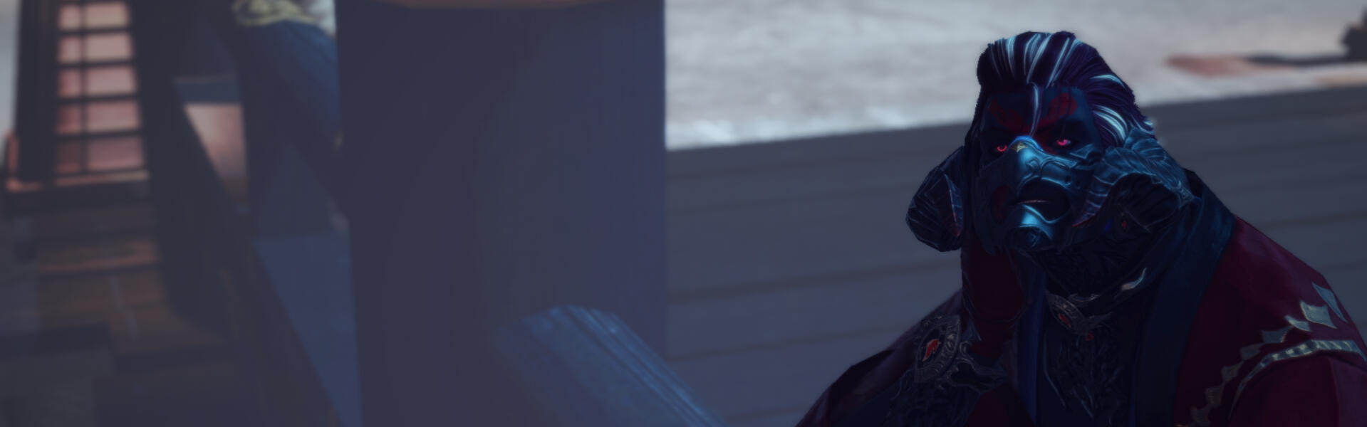 Dungeoneer: Well-versed in delving into prohibited territory, nonsensical labyrinths or forsaken temples; if one is seeking a hardhitter, he is the right kind of trouble.Kugane menace: Gossip of a xaela with red warpaint and candycane hair can be heard at times in the Bokairo Inn and Bokairo Hotsprings. From scaring away patrons to causing ruckus in the marketplace and hotsprings, Gamnan finds it all amusing. He is quite familiar with the Sekiseigumi, and vice versa.The Dusk Culling: A firm believer that his successful "defeats" of challengers will bring them back to Mother Nhaama. So if one was to challenge him to a duel, he considers it a fight to the death. If he loses, he'll keep urging a rematch.